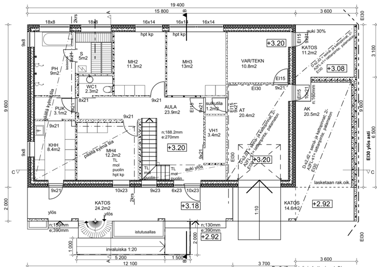Talo on yksilöllisesti perheen tarpeiden mukaisesti suunniteltu valmis rapattu kaksikerroksinen Passiivikivitalo.