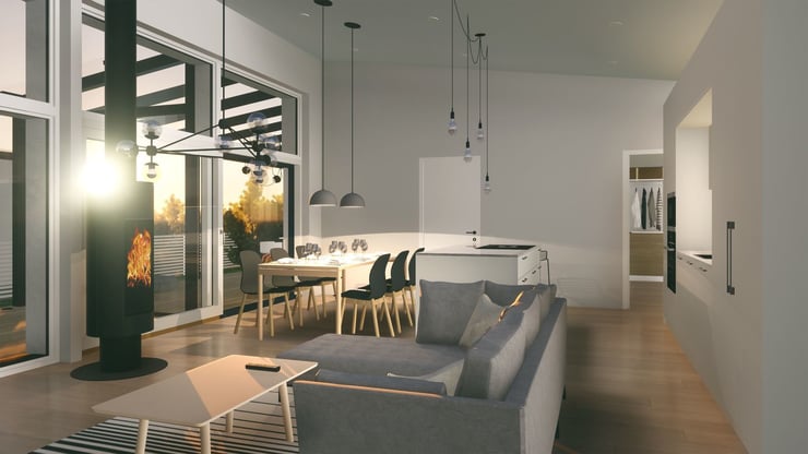 LAADUKKAAT MODERNIT MATERIAALIT! 40 m2 terassille käynti 4m leveästä liukuovesta, josta 21 m2 on lasitettu Lumonin laadukkailla laseilla.